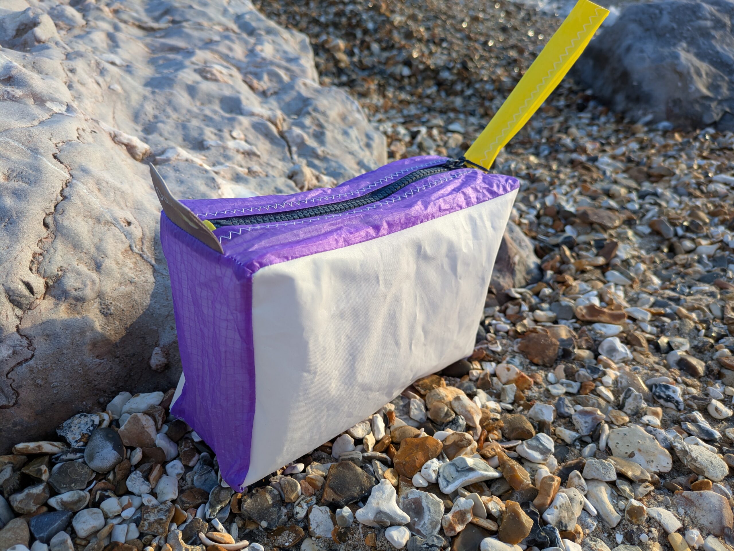 Lovely wash bag to be given as a gift. A great idea to recycle old sails.