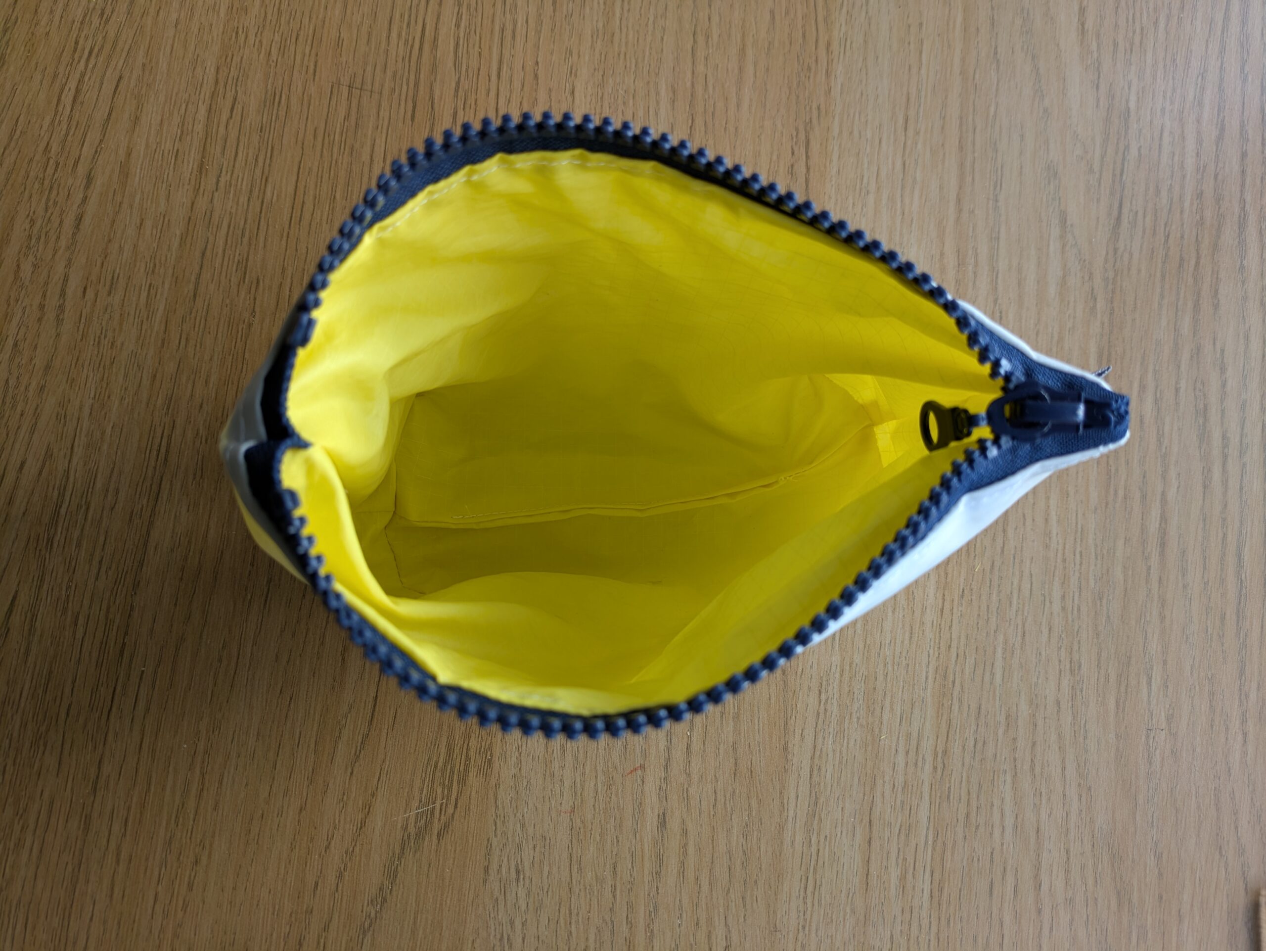 A well made pouch suitable for keeping all sorts tidy in bags, Great idea using Sail material for further use, Arrived safe and secure quickly. Purchased another bag and a tote bag as well.